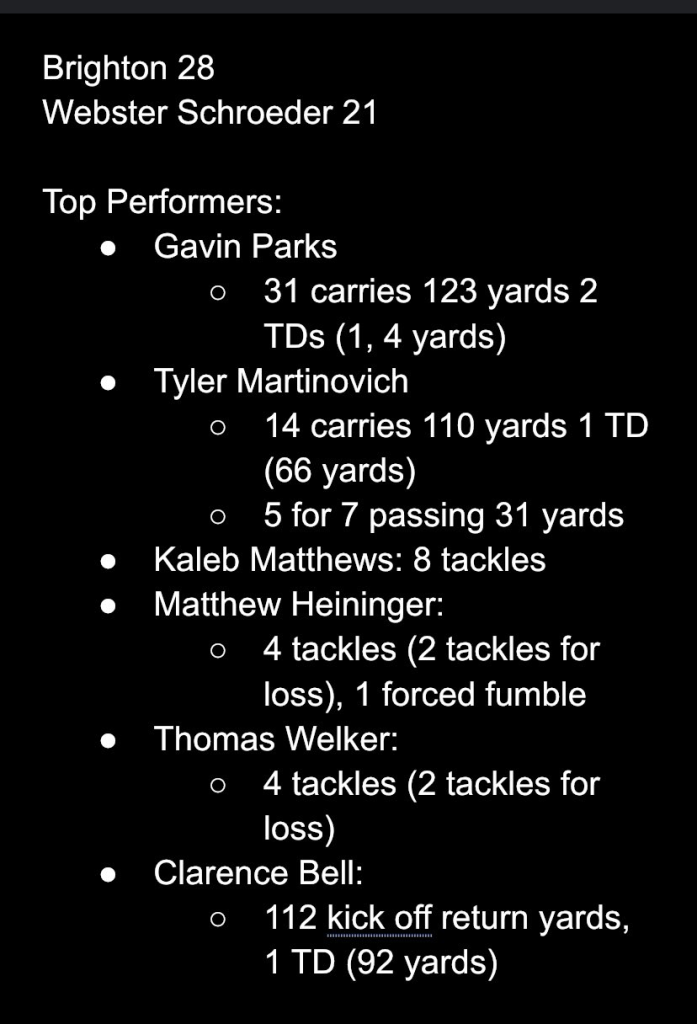 Brighton beats Webster shroeder