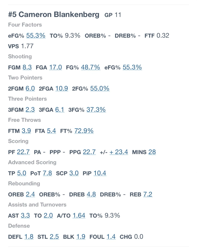 cameron Blankenburg a flat out super star for Wayne in high school just a sophomore averaging over 20 points a game great shooter also athletic plays hard a gym rat also rebounds well for a guard has been leading Wayne to undefeated team in finger lakes play also a 2 time player of the year candidate in the league has Wayne into a sectional contender in class A this year .heres his stats below